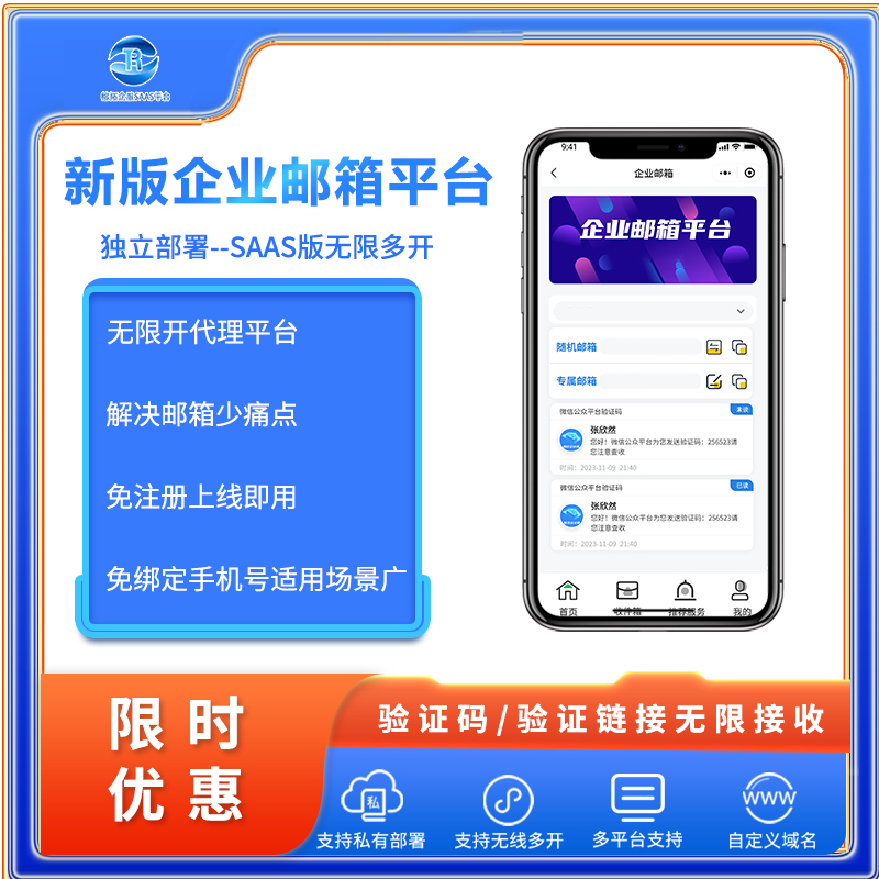 榕拓企服SAAS“企业邮箱平台”系统快捷、高效、简单、易操作,解决的多应用注册及验证场景邮箱被占用的痛点;自动生成专属邮箱,统一接受所有邮件,电脑端+小程序二合一适应多种使用场景